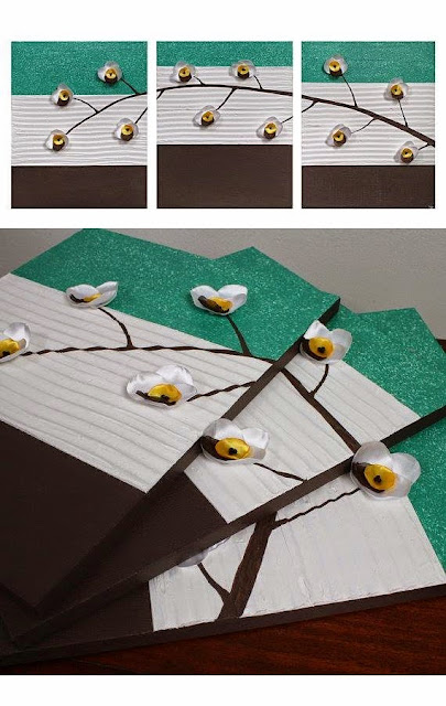 Achei super lindos esses quadros com as flores feitas de tecidos.